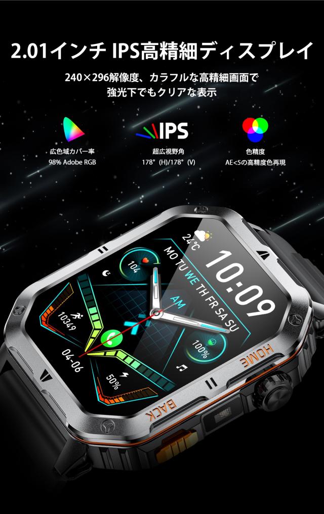 スマートウォッチ バッテリー容量1000mAh 軍用規格 日本製センサー 通話機能 着信通知 歩数計 心拍数 睡眠管理 音楽再生 カメラ制御 天気予報 懐中電灯 運動モード iPhone対応 android対応 敬老の日 プレゼント