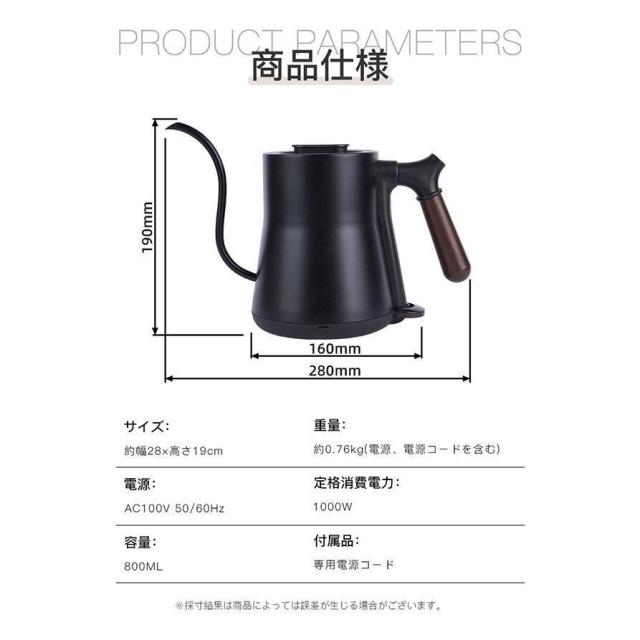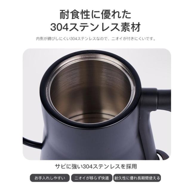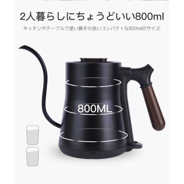 電気ケトル 電気ポット 細口 小型 おしゃれ ケトル 0.8L 電気やかん 湯沸かし器 ステンレス 自動オフ 空焚き防止 コーヒードリップ スリムノズル