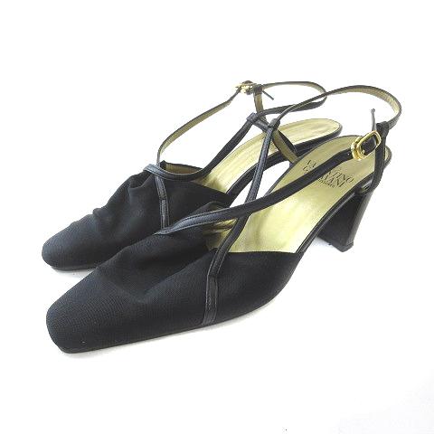 【中古】ヴァレンティノ ガラヴァーニ パンプス スクエアトゥ サンダル ストラップ 黒 ブラック 5.5 22.5cm