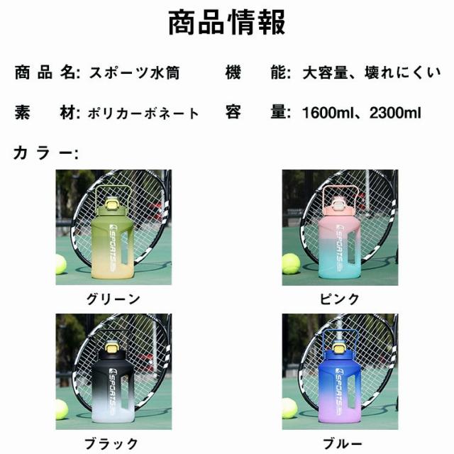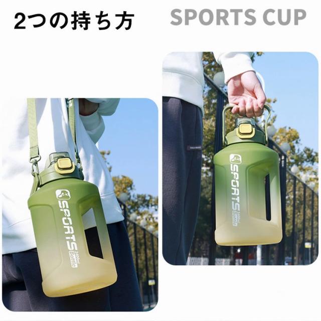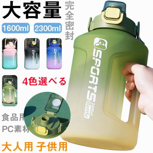 スポーツ 水筒 大容量 軽量 1.6リットル キッズ 直飲み 肩掛け 透明 大人 洗いやすい おしゃれ グラデーション ウォーターボトル 携帯便利 漏れ防止 子供 キッズ プラスチック スポーツボトル ヨガ フィットネス 用 ジム アウトドアボトル 1600ml 2300ml