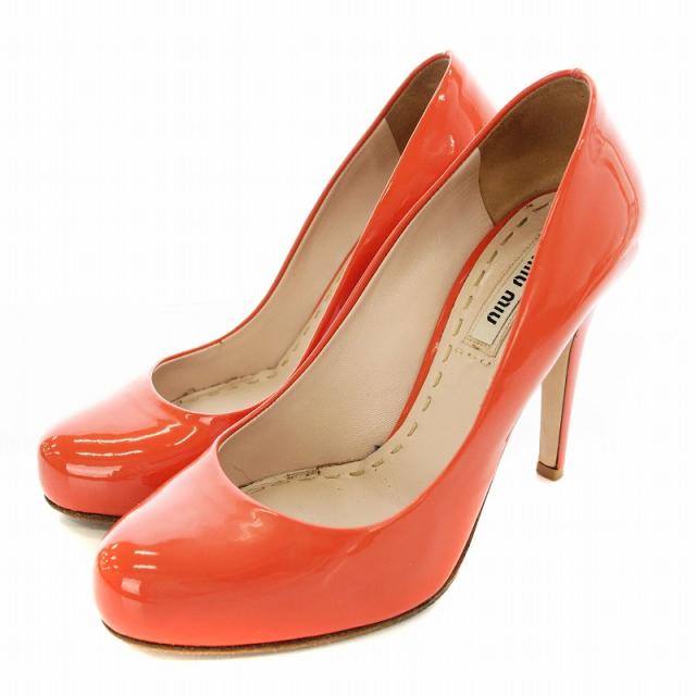 【中古】ミュウミュウ miumiu エナメル パンプス ハイヒール 34.5 21.5cm オレンジ /☆G レディース