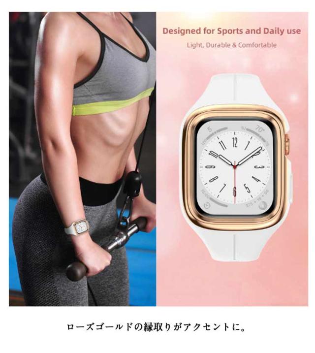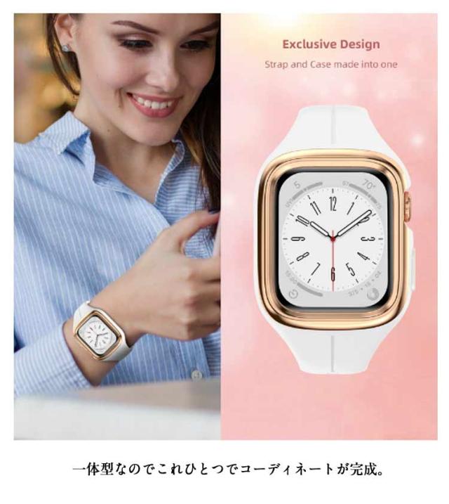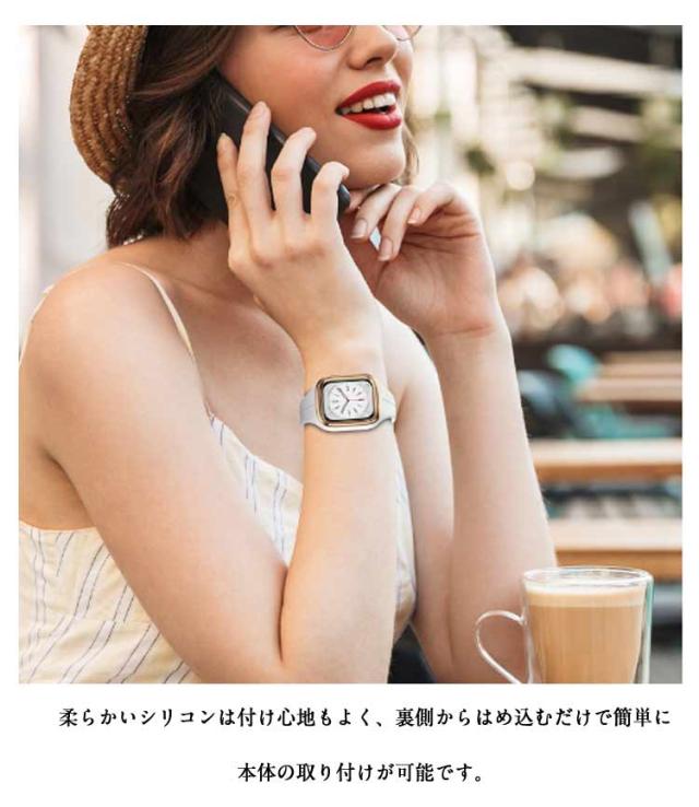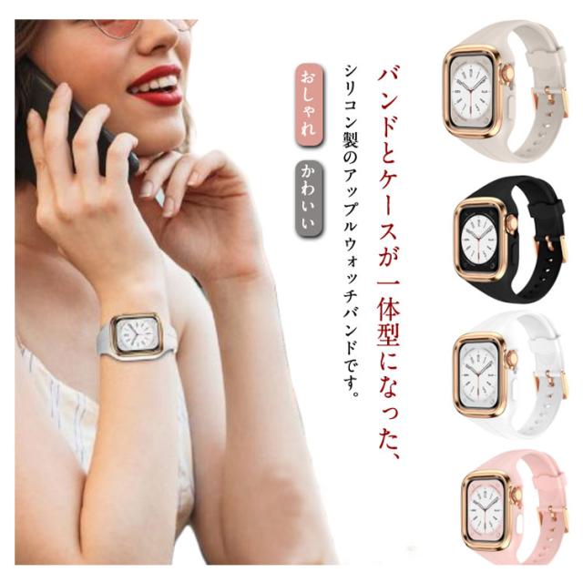 アップルウォッチ バンド ケース 一体型 Apple Watch ベルト 40mm 41mm シリコン apple watchバンド ステンレス ケース カバー ゴールド 女性 おしゃれ かわいい スポーツ Apple watch series se 9 8 7 6 5 4 送料無料