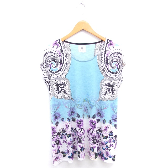 【中古】ブージュルード Bou Jeloud チュニック ワンピース 花柄 プルオーバー 薄手 ノースリーブ FREE ライトブルー