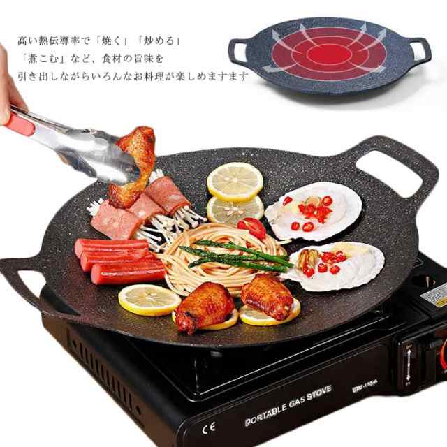 鉄板 グリドル 鉄板 丸型鉄板 フライパン 鉄鍋 焦げ付きにくい ガスコンロ 炭火 直火 熱伝導 ステーキ アウトドア キャンプ BBQ 肉料理 卵料理 おしゃれ グリドル 鉄板 アウトドア プレート 丸型鉄板