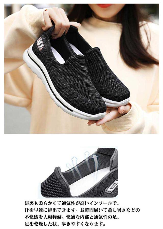 ニットスニーカー レディース ニットスニーカー スリッポン 蒸れない 超軽量 ウォーキングシューズ ママシューズ メンズ 婦人 お年寄り 立ったまま履ける 買い物 散歩 疲れにくい 春 夏