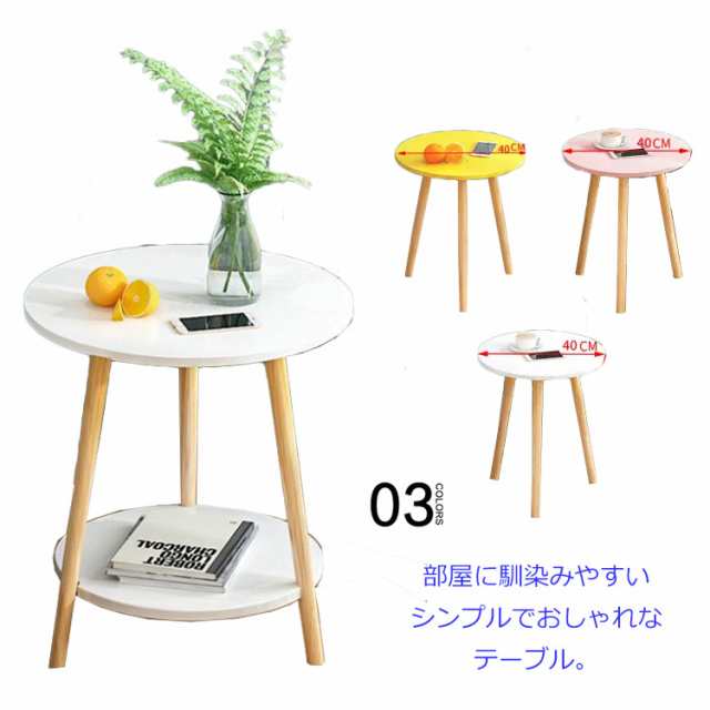 テーブル サイドテーブル ベッドサイドテーブル ナイトテーブル 丸型 円形テーブル コーヒーテーブル カフェテーブル ダイニングテーブル 三脚 木脚 テーブル 二段 机 つくえ 座卓 高さ40cm 幅47cm レトロ おしゃれ 北欧