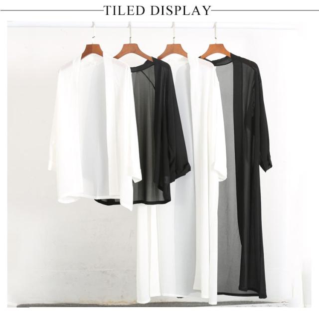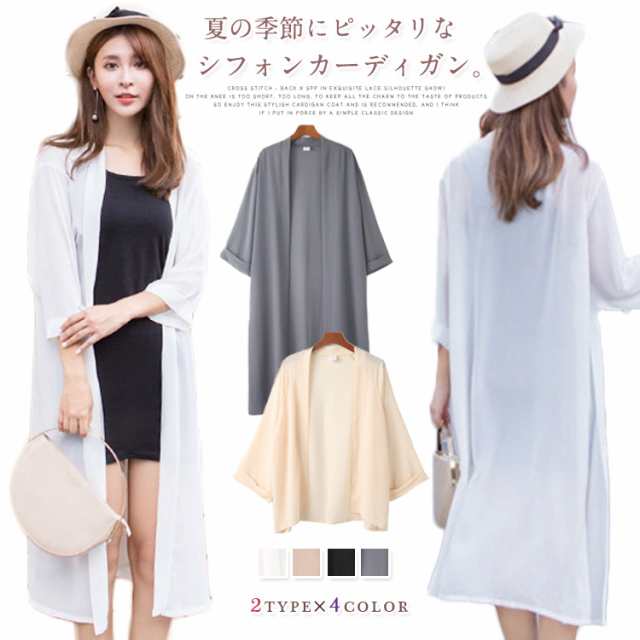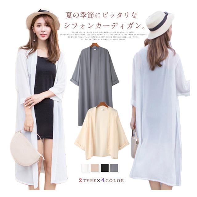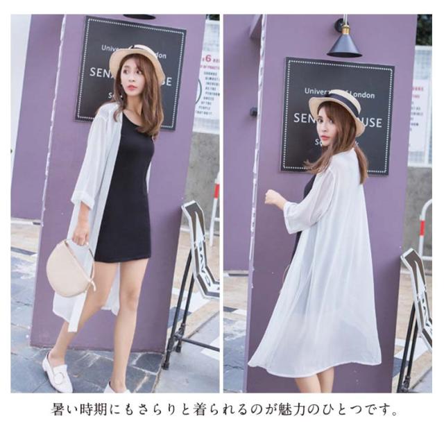送料無料 ライトアウター シフォンカーディガン カーディガン ロングカーディガン 夏 春夏 長袖 ロング丈 ヒザ丈 シンプル 無地 日焼け対策 冷気対策 羽織り 無地 レディース