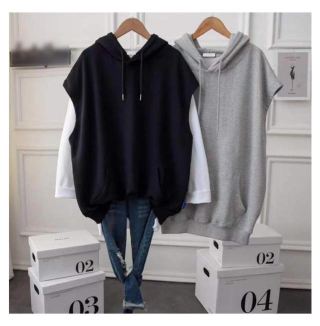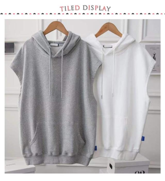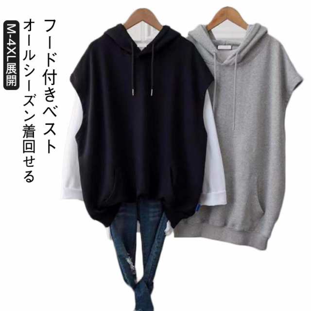 大きめ ノースリーブ 無地 トップス トレーナー パーカー プルオーバー ゆったり カジュアル 軽い フード付き スポーツウェア 春夏 レディース 体型カバー ベスト 可愛い 通勤 お出かけ