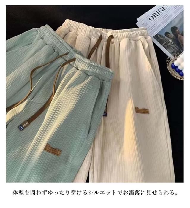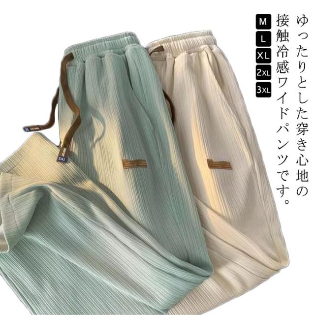 接触冷感 ワイドパンツ メンズ アイスシルクパンツ カジュアルパンツ ロングパンツ 夏 薄手 涼しい ストレートパンツ ゆったり 大きいサイズ M ? 3XL 長ズボン 春 夏 秋 ボトムス ガウチョパンツ 部屋着 速乾 スポーツ 無地 カジュアル おしゃれ 送料無料