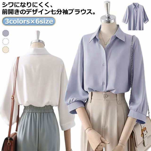 | 3colors×6size シワになりにくく、前開きのデザイン七分袖ブラウス | |