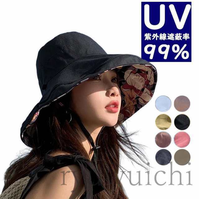 バケットハット UVカット レディース つば広 帽子 小顔 おしゃれ 春 夏 秋 旅行 日よけ 折りたため リバーシブル UV 花柄 両面使える 紫外線対策 あご紐 自転車