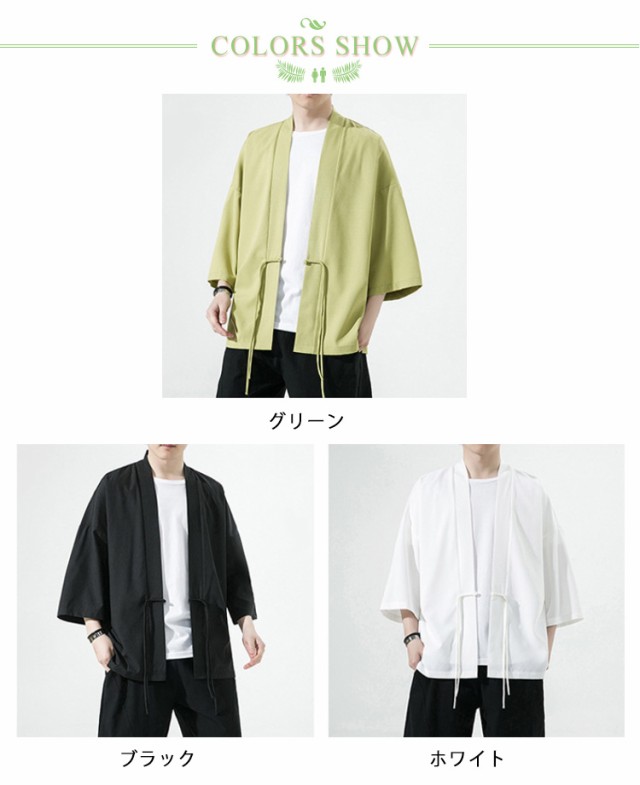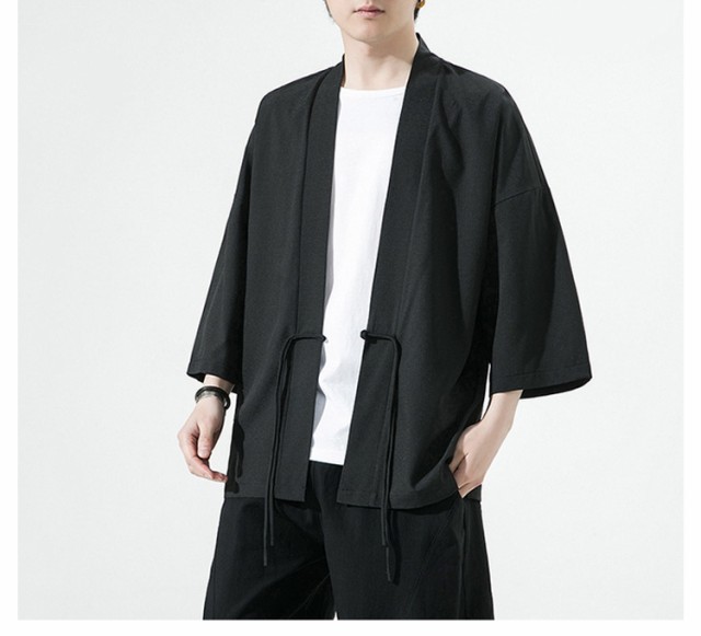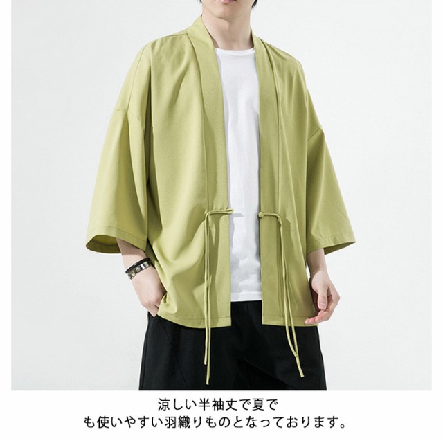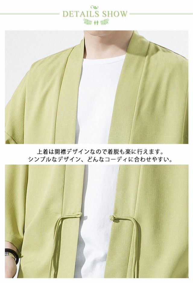 部屋着 おしゃれ チャイナボタン 7分丈 春夏用 M~5XL 甚平 七分袖 ゆったり アイスシルク サマー 着物 薄手 涼しい 羽織り カーディガン 無地 サマー カーディガン メンズファッション 夏