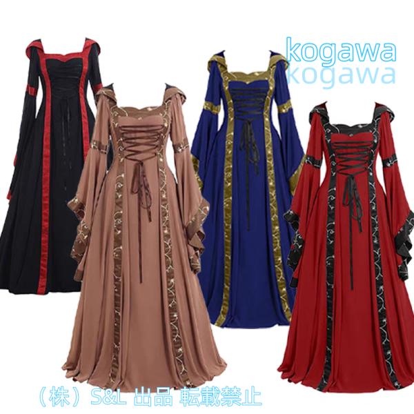 ハロウィン衣装ヨーロッパ中世宮廷服ドレス仮面舞踏会ロングドレスS&L学園祭文化祭舞踏会コスチューム全4色ワンピースパーティードレス衣装コスプレ