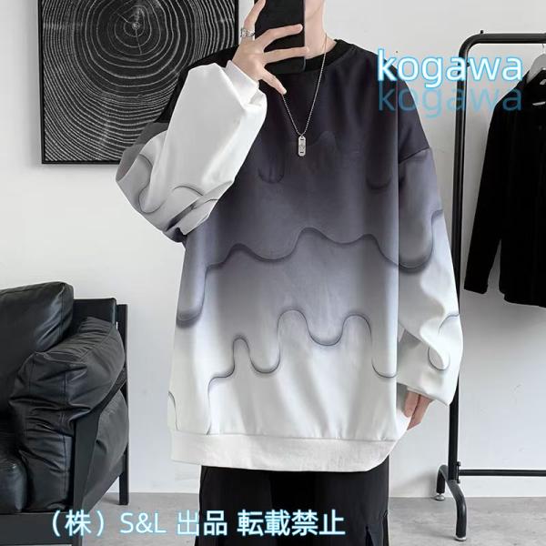 トレーナーメンズ長袖着痩せ丸首大きいサイズクルーネック春秋薄手長袖トレーナープルオーバーS&Lカジュアルカットソー日常お出かけアウター上品