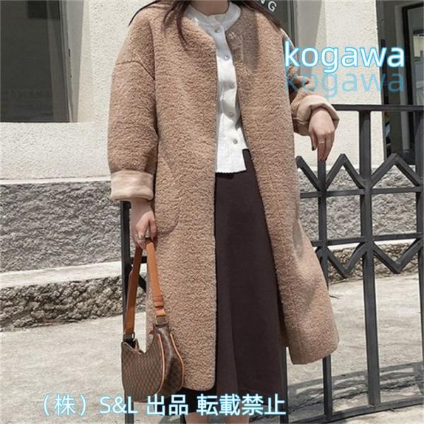 ロングコートノーカラーフェイクムートンボアコートムートンコートボアダッフルコートブルゾンジャケットS&Lアウタートレンチコートアウターコート