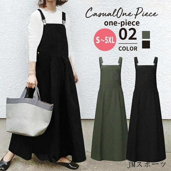 【商品名】 サロペットスカート ロング 大きいサイズ マキシ丈 春夏 秋冬 ジャンパースカート 大人 ワンピース サロペット オーバーオール