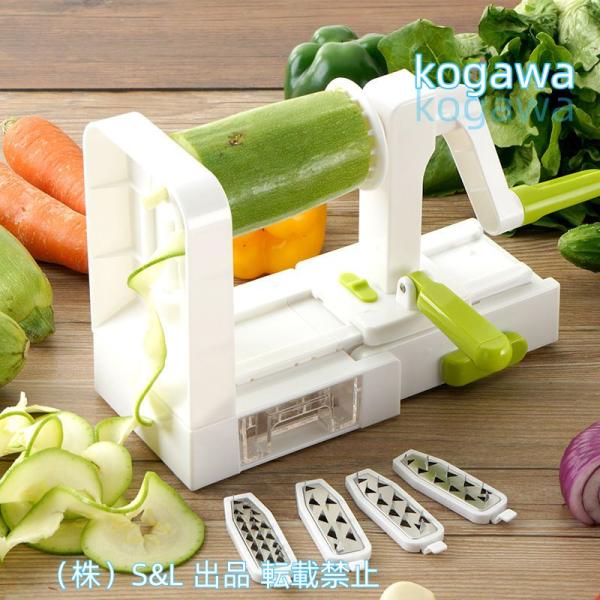 スパイラルカッター 手動野菜カッター スライサー 千切りスライサー [ハンドルをくるくる回すだけ] 折りたたみS&L 持ち運び 1台5役 調理器具 すりおろし器
