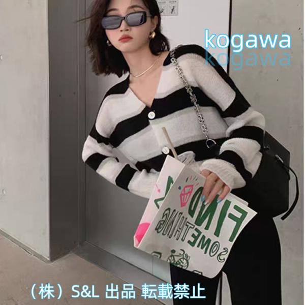 トップス ニット カーディガン ニットカーディガン ショート丈 ボーダー柄 長袖 秋冬 新作