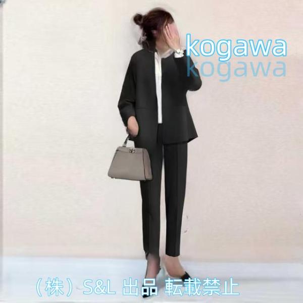 スーツレディースセット2点セット洗える着回しジャケットノーカラーフォーマルS&Lテーパードパンツ入学式スーツ母親パンツスーツ卒業式卒園式ママ
