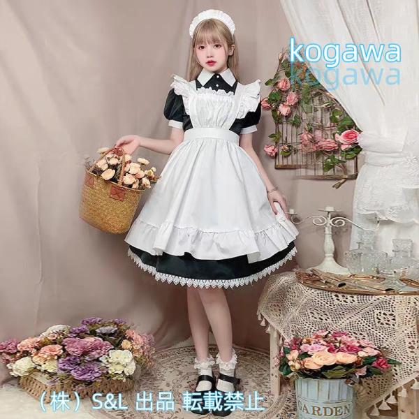 可愛いメイド服コスプレ ハロウィン コスプレ 衣装 半袖 ロング ひざ丈 ワンピース フリフリ エプロン コスチューム メイド コスプレ衣装 仮装