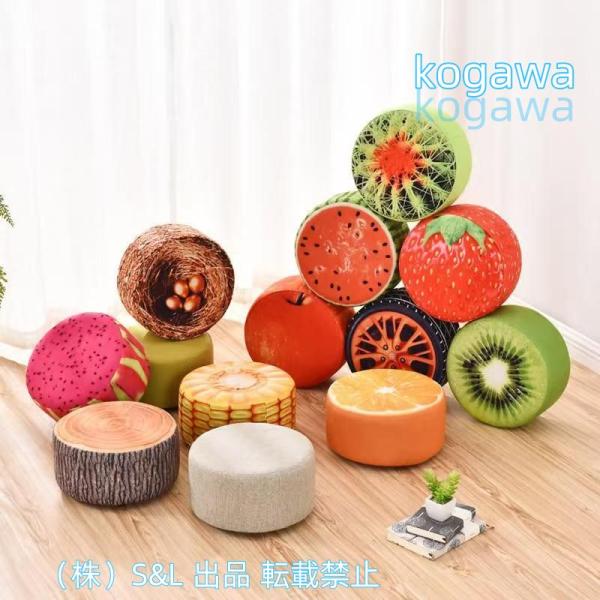 スツール円型果物柄可愛い座椅子座面クッション踏み台足置き台玄関チェアS&Lフットスツールカバー洗えるリビングカラフル子供用おしゃれ(木の切り株