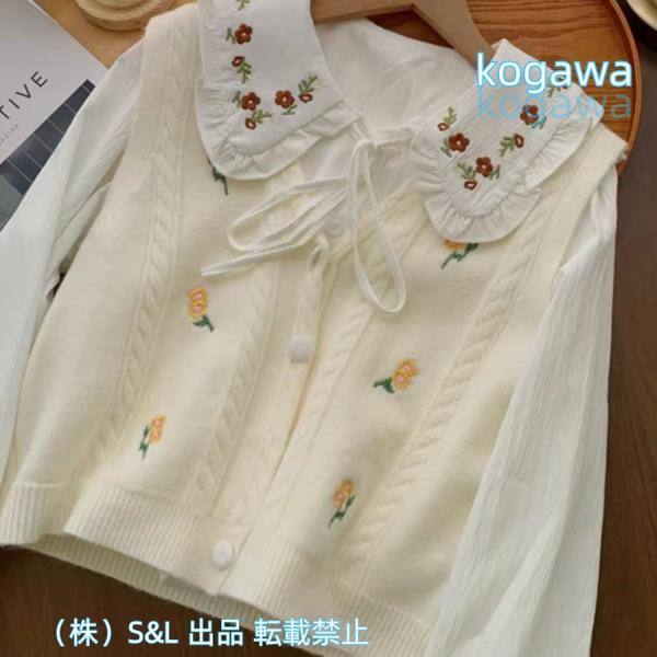 シャツ 春秋 2点set ブラウス 襟付き レディース 白シャツ 長袖 株式会社S&L ゆったり リボン トップス 丸襟刺〓