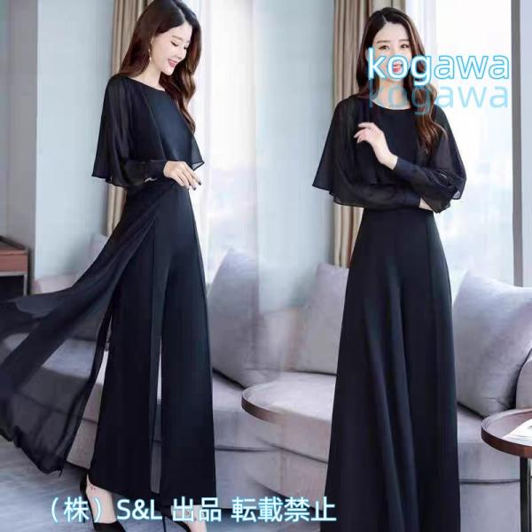 パンツドレス 結婚式 お呼ばれドレス 黒 パーティードレス セットアップ フォーマル シフォン ワイドパンツ 株式会社S&L上品 大きいサイズ 3l