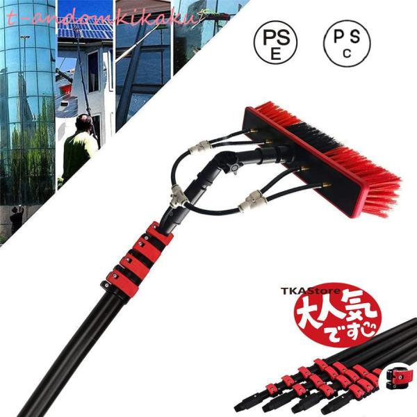 高所掃除ブラシ 散水ブラシ 3.6m~9m 給水伸縮ブラシ 外壁掃除 S&L 35Cmブラシヘッド 窓ガラス/壁掃除 高所ワイパー 超ロングポール 業務用 軽量 取り外しが簡単