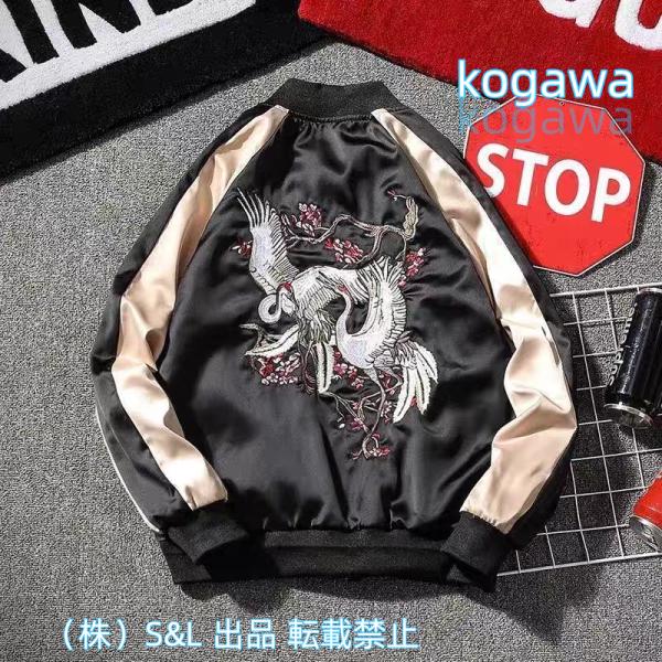 スカジャン メンズ 男女兼用 横須賀 刺繍 ブルゾン 鶴 サテン 光沢 カジュアル リバーシブル 株式会社S&L フライトジャケット レディース アウター 春 秋