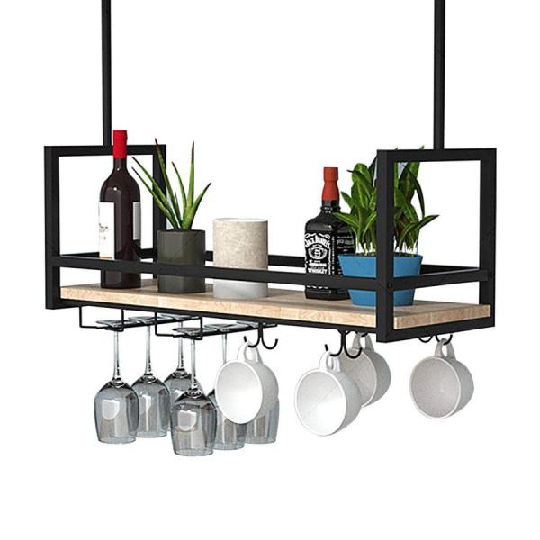 天井ワインラックヨーロピアンスタイルハンギング天井棚フローティングシェルフブラックS&Lバーハンギングデコレーション収納ラックアイアンソリッドウッドワ
