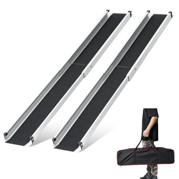 本商品の一部オプションには別途料金が発生します:6FT(98.5-183CM)(2000円) 7FT(120-213CM)(4000円)長さ調節可能なスロープ: 5FT:(最大時)約152CM、(最小時)約83.5CMの2段階調節。横幅は18.9CMです。お薦め使用高さ38cm。ご購入前に使用サイズを確認ください。軽さと耐久性を兼ね:該製品は2個1セット。専用バッグ付きだから持ち運びに便利です。軽量で丈夫なアルミ製。最大荷重272kg。アルミ素材のため、使用中ある程度にたわみがあることは正常で、不使用時また回復になる。滑り止め加工:製品表面と裏面に滑り止めパッド付いて、使用中のズレを防止できて、車椅子?台車?自転車?カートのスムズーな移動に。曲がっているヘッド部で、床面にしっかり接触し、より安全安心。端末の延長プレートにより、車椅子が簡単に登れる。車椅子スロープとして最適。段差解消スロープ:車椅子スロープはステンレス製ロック付き、長さ調整可能!車椅子用のスロープになり、ご自宅をバリアフリー対応に! 台車用スロープになり、倉庫や事務所内での段差を解消し、台車による荷物の運搬をスムーズに!