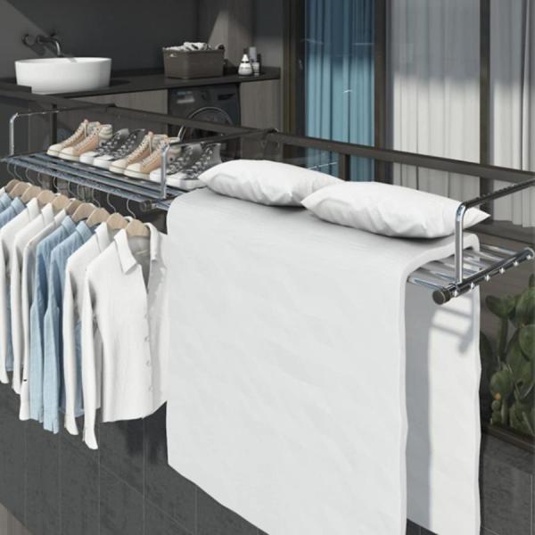 窓枠物干し物干しラックステンレススチール伸縮ベランダ手すり折りたたみ式物干しスタンドS&L荷重支持用フック3個物干しラック乾燥スペースを拡大イン