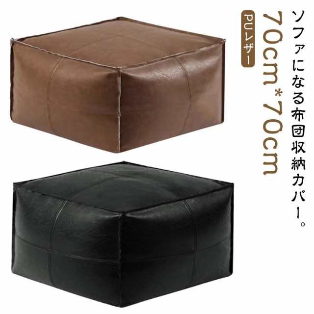 布団収納 ケース 布団収納袋 クッション ソファ PU レザー 革 布団収納クッション リビングクッションになる 掛け布団収納ケース スクエア型 70cm×70cm 掛け布団 敷き布団 収納袋 収納ケース 収納カバー 毛布収納 ブランケット収納 ビーズクッションカバー カバーのみ