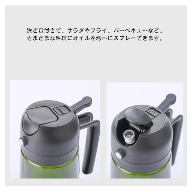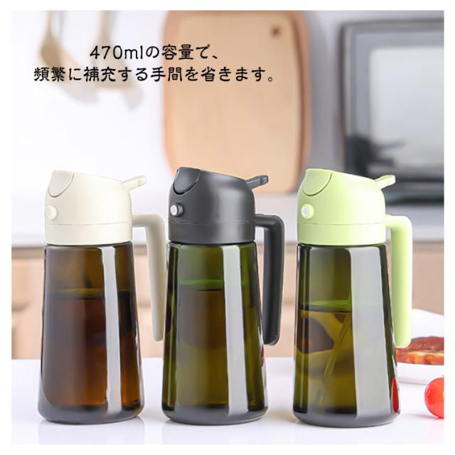 | オイルスプレー 2イン1 オリーブオイルディスペンサーは、キッチンでの調理をより便利にするアイテムです。 ガラス製のボトルは食品グレードで、安全に使用できます。 注ぎ口付きで、サラダやフライ、バーベキューなど、さまざまな料理にオイルを均一にスプレーできます。 470mlの容量で、頻繁に補充する手間を省きます。 シンプルでスタイリッシュなデザインは、どんなキッチンにもマッチし、使いやすさと美しさを兼ね備えています。 | |