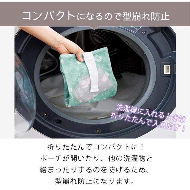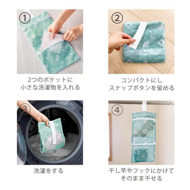 洗濯機にそのまま入れて使える丈夫なメッシュ生地を使用。