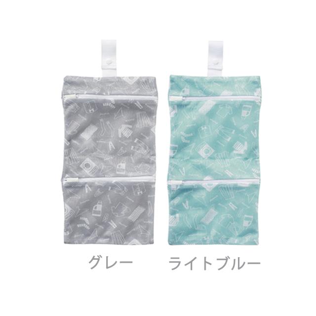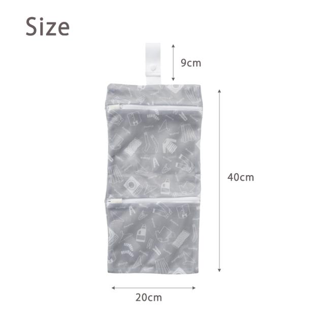 ランドリーネット 洗濯ネット 洗濯物バッグ 吊り下げポーチ 時短 便利グッズ ダブルファスナー型 持ち運び メッシュ 洗える 仕切り 2ポケット