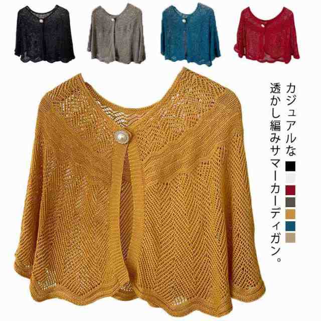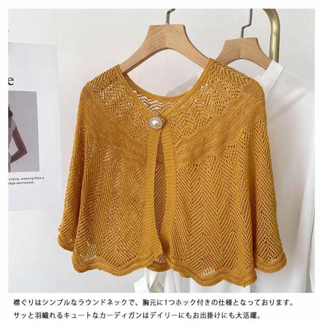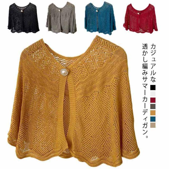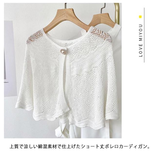 送料無料 サマーカーディガン 透かし編み レディース カーディガン ボレロ ショート丈 透かし編み スカラップ 冷房対策 ゆるいカーディガン 重ね着 レイヤード 夏休み シンプル お洒落 大人 こなれ感 トップス 春夏 夏物