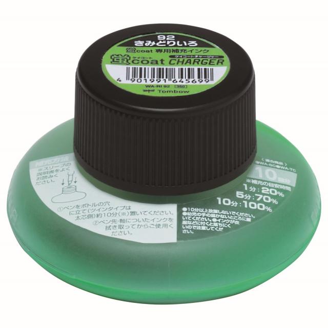トンボ鉛筆の蛍光マーカー蛍コート専用の補充インク立てるだけで簡単にインクチャージ! 【蛍コート専用補充インク】 ペン先が丈夫な蛍コートなら繰り返しインク補充してもペン先がつぶれにくく長く使用できる 【倒れてもこぼれない安心設計】 倒れてしまってもインクがこぼれる心配がないセーフティボトル 【手軽なエコ スタイル】 約10本分のインクを補充できて、経済的