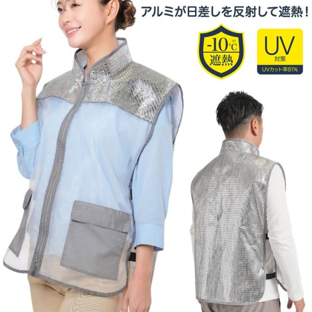 アルミ遮熱ベスト メッシュベスト 夏用 男女兼用 熱中症対策 暑さ対策 ガーデニング 農作業 釣り アウドドア 作業用 作業着 レディース メンズ