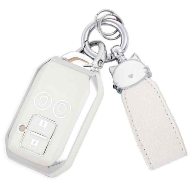ZANEKO キーケース適合トヨタ ライズ ルーミー キーカバー適合ダイハツ ロッキー 新型タフト タント カスタム スマートキーケース (猫、シルバーホワイト) (適合スズキB4, シルバーホワイト)