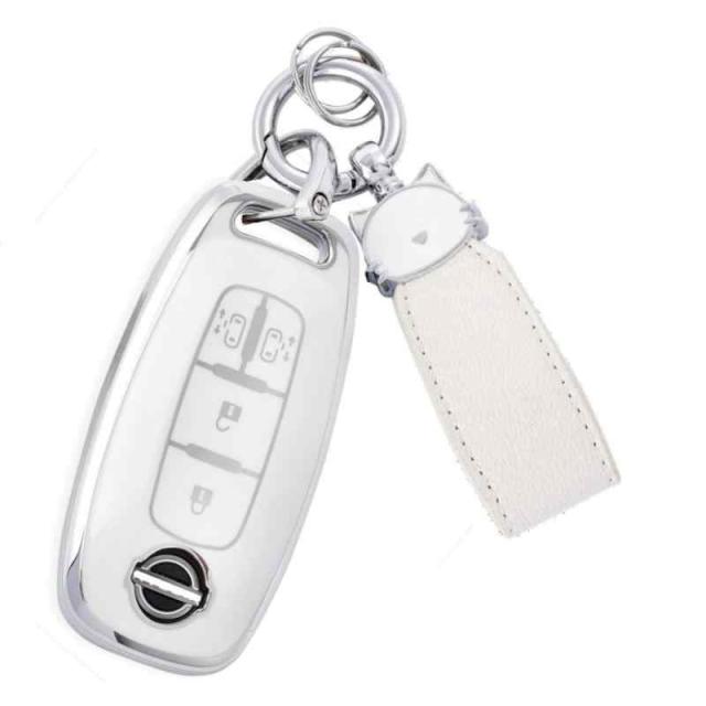 ZANEKO キーケース適合トヨタ ライズ ルーミー キーカバー適合ダイハツ ロッキー 新型タフト タント カスタム スマートキーケース (猫、シルバーホワイト) (適合日産C4, シルバーホワイト)