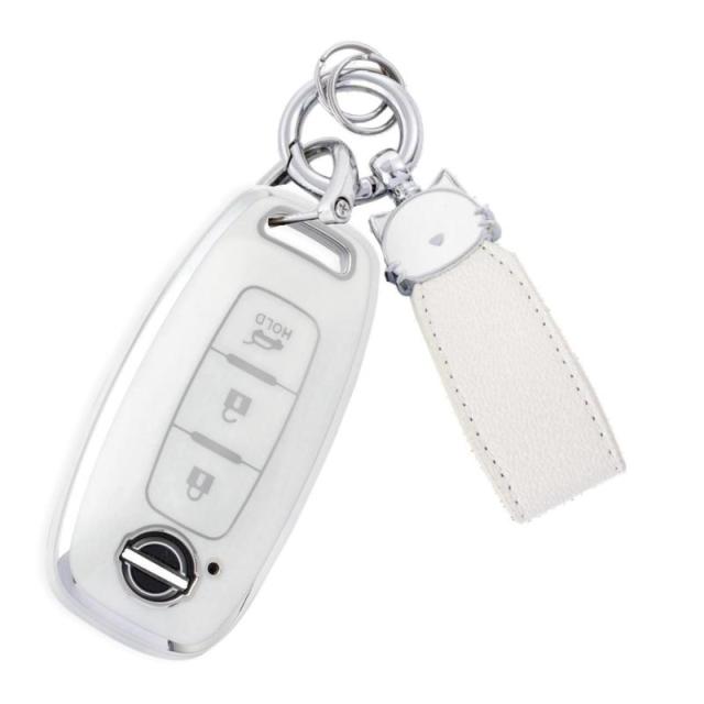 ZANEKO キーケース適合トヨタ ライズ ルーミー キーカバー適合ダイハツ ロッキー 新型タフト タント カスタム スマートキーケース (猫、シルバーホワイト) (適合日産C3, シルバーホワイト)