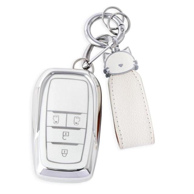 ZANEKO キーケース適合トヨタ ライズ ルーミー キーカバー適合ダイハツ ロッキー 新型タフト タント カスタム スマートキーケース (猫、シルバーホワイト) (適合トヨタA4, シルバーホワイト)