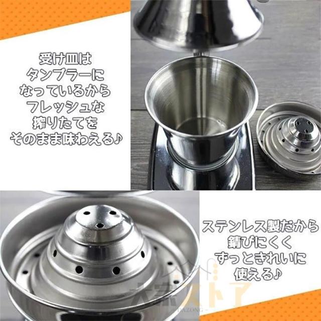 お手入れが簡単:カップを取り外せる設計で洗い易い。直径10cmの円錐形ろ過器は、レモンやライムなど小さい柑橘類にも使用できます。家庭用、業務用に適用。注:グレープフルーツの使用不可