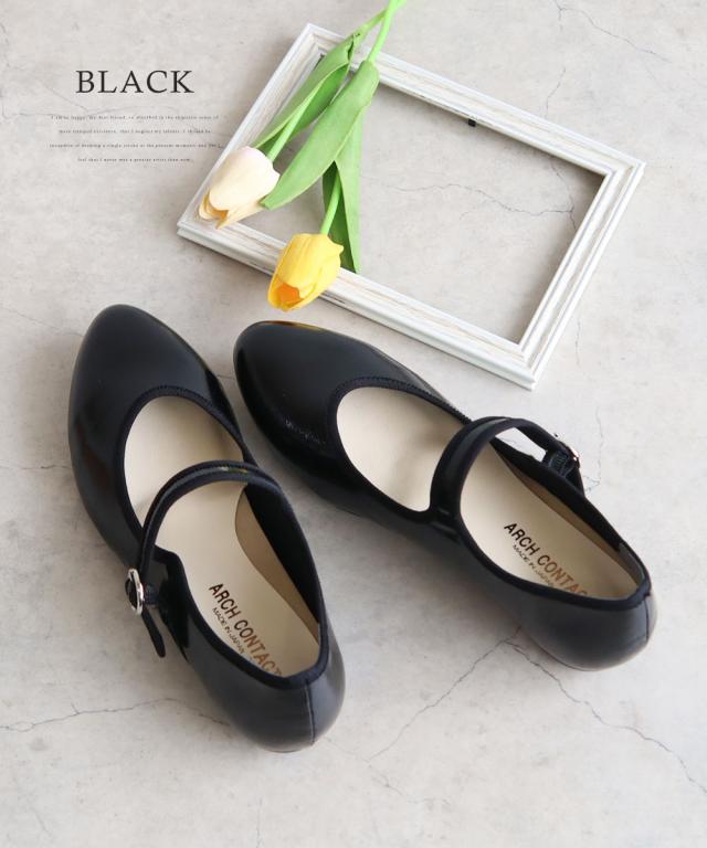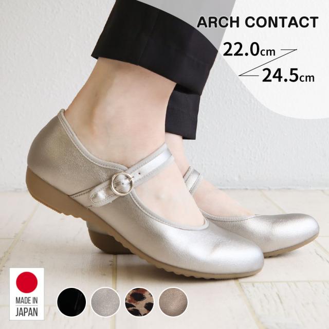 アーチコンタクト パンプス 痛くない 柔らかい 靴 レディース 日本製 ストラップ メリージェーン ローヒール ウェッジソール アーモンドトゥ 軽量 軽い 歩きやすい 疲れにくい 滑りにくい 通勤 オフィス 春 夏 秋 冬 上品 大人 おしゃれ 黒 ブラック ARCH CONTACT 39175