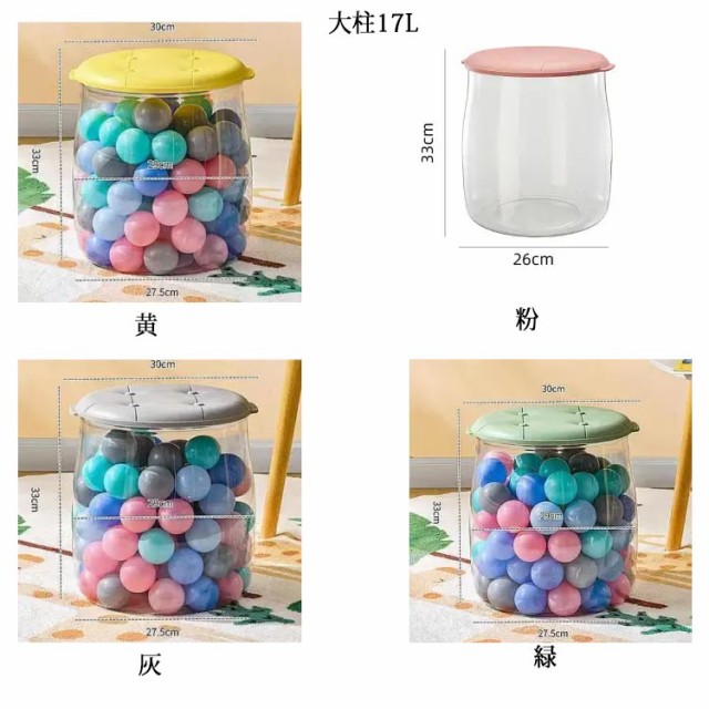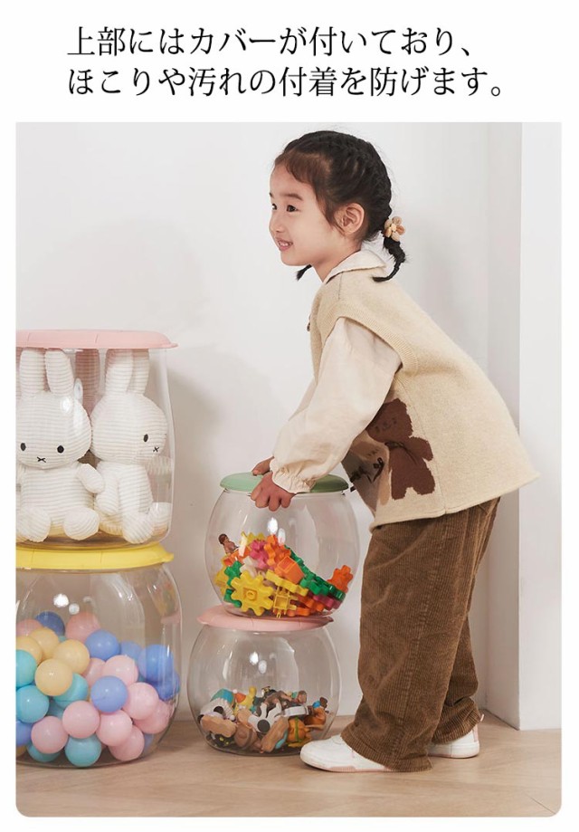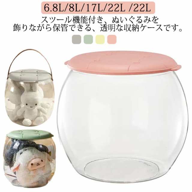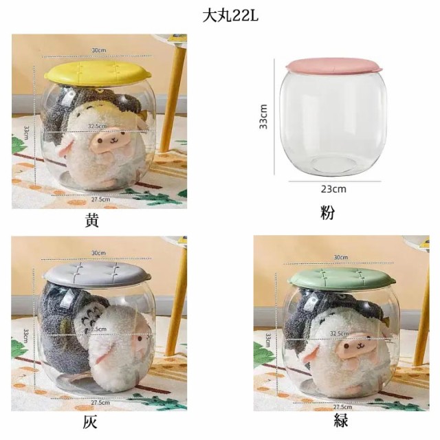持ち手 スツール ぬいぐるみ収納 透明 おもちゃ収納ボック 蓋付き 収納ケース スツール 収納 ディスプレイケース コレクションケース 防塵 円柱形 DIY 展示ボックス クリア 透明 子供部屋 玄関収納