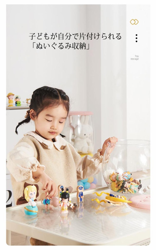 | スツール機能付き、ぬいぐるみを飾りながら保管できる、透明な収納ケースです。 見せる収納がおしゃれで可愛いぬいぐるみ用収納です。 子どもが自分で片付けられる「ぬいぐるみ収納」 上部にはカバーが付いており、ほこりや汚れの付着を防げます。 | |