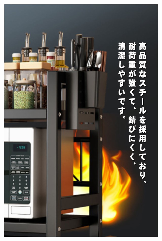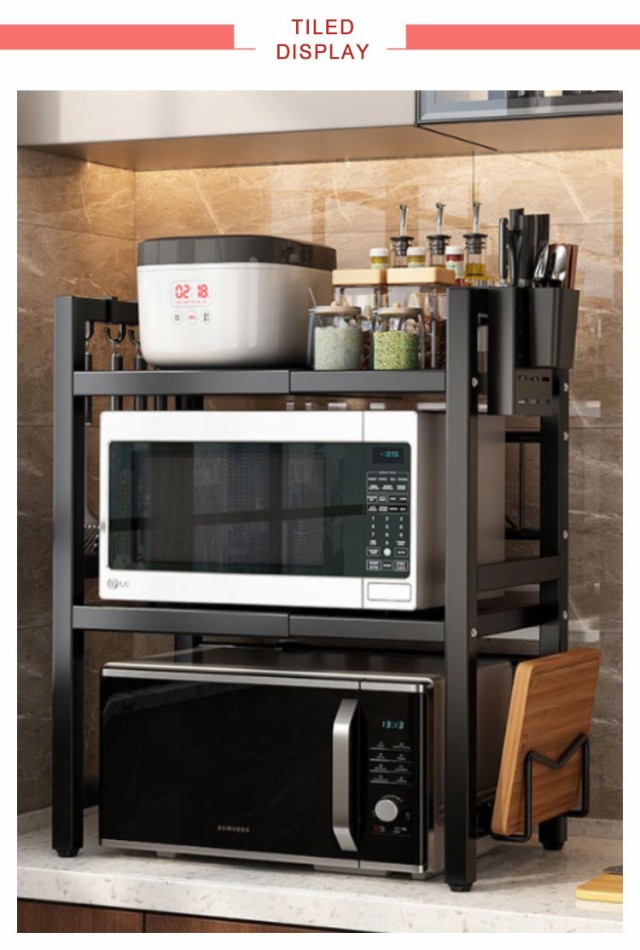 ラック 伸縮 レンジラック キッチンラック レンジ上 レンジ棚 3段 キッチン収納 おしゃれ シンプル 北欧 スリム トースター ラック 電子レンジ台 キッチンカウンター上収納 キッチン用品 台所収納 伸縮キッチンラック 2段タイプ ホワイト ブラック