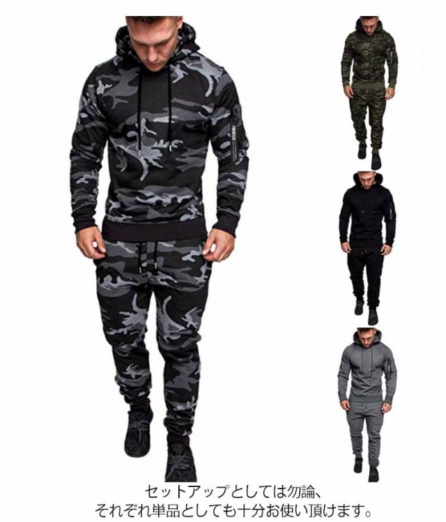 メンズ ジャージ 上下セット スウエット スポーツウエア プルオーバーパーカー 無地 迷彩柄 カジュアル メンズ ジョガーパンツ 春服