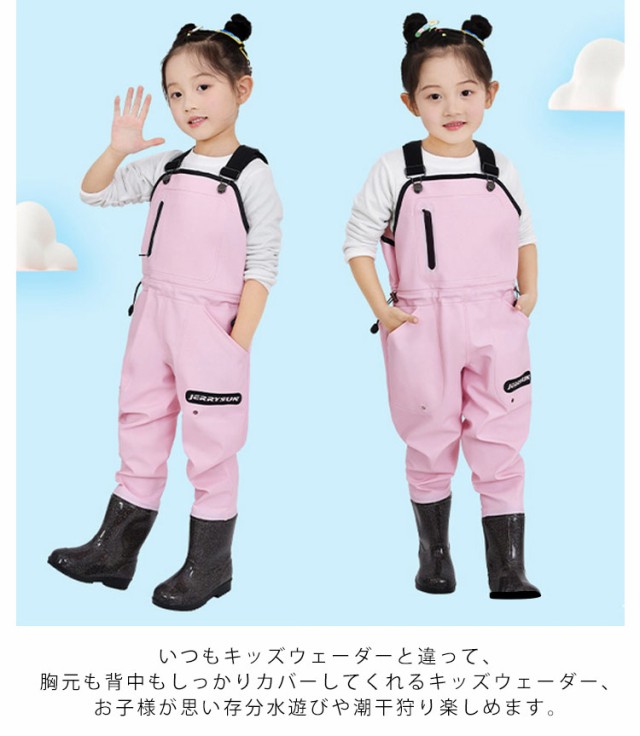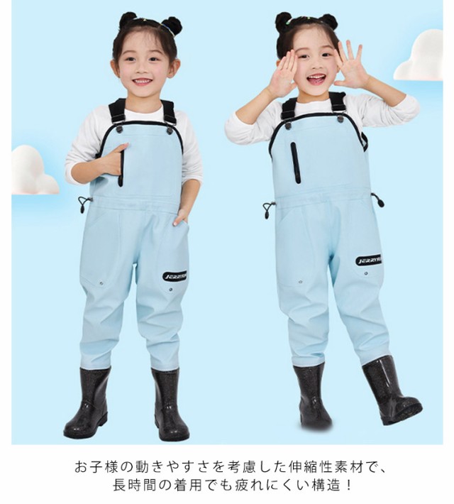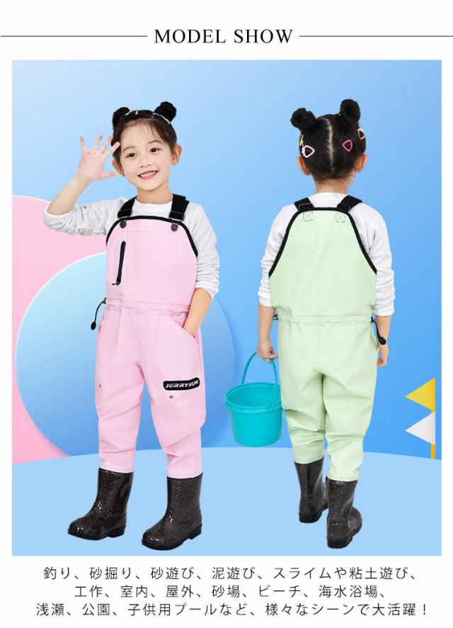 子供用ウォーター 防水 ウェストアジャスター付き 女の子 レインパンツ キッズ 渓流 釣り 砂遊び 男の子 遊び着 胴付長靴 ズボン 潮干狩り レインシューズ プレイウェア お砂場着 2025新作 長靴一体 胴付長靴